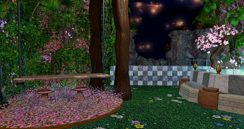 The Back Garden (Room #6) is one of the spaces we're proudest of here. Finally, a space where you can enjoy your outdoor sex and primal encounters freely! Whether you're after a romantic picnic, steamy hot spring sex, or a literal roll in the hay, be sure to explore to find just everything our extra space has to offer. There's still tucked away corners yet to be found!