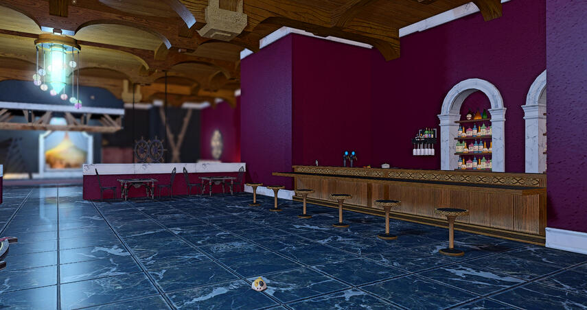 A room for the most discerning gentleperson, the Lounge features comfortable seating, an area for dancing, spaces for gaming with your fellow discerners, and a well-stocked wet bar to keep you hydrated while you entertain.