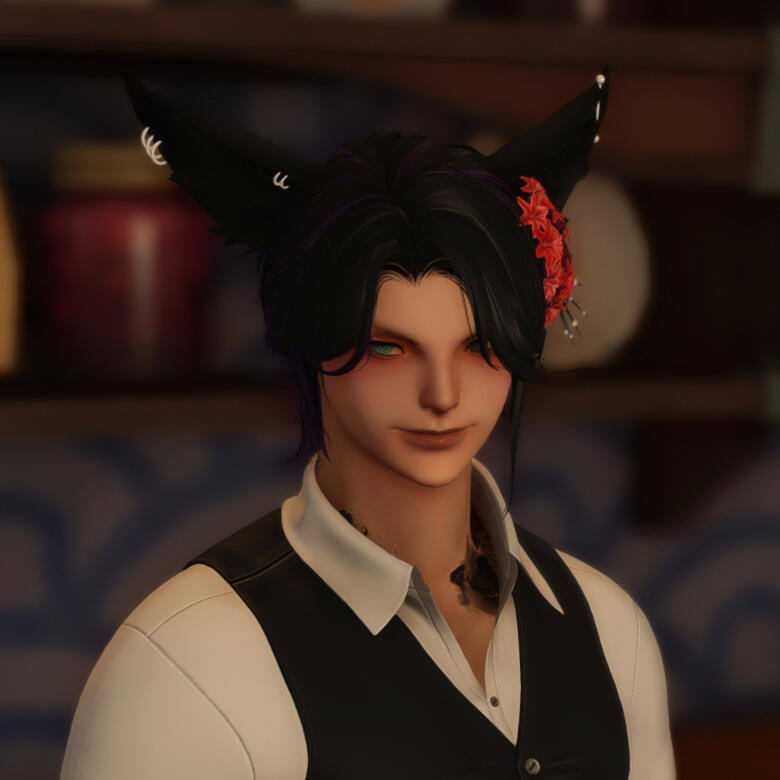 No one is quite sure who Mun and Floki's mysterious business partner is, and when asked, the pair will simply grin and say "oh, just the big boss at our workplace." Whoever they are, they either doesn't seem to care much about partaking in the club's pleasures, or else are keeping themselves very well undercover - but theories abound. A powerful member of the Syndicate? A dignitary come to Eorzea from far-off lands? An elder dragon who just wants a break from Dravanian politics? Or perhaps it's a person of much smaller countenance...