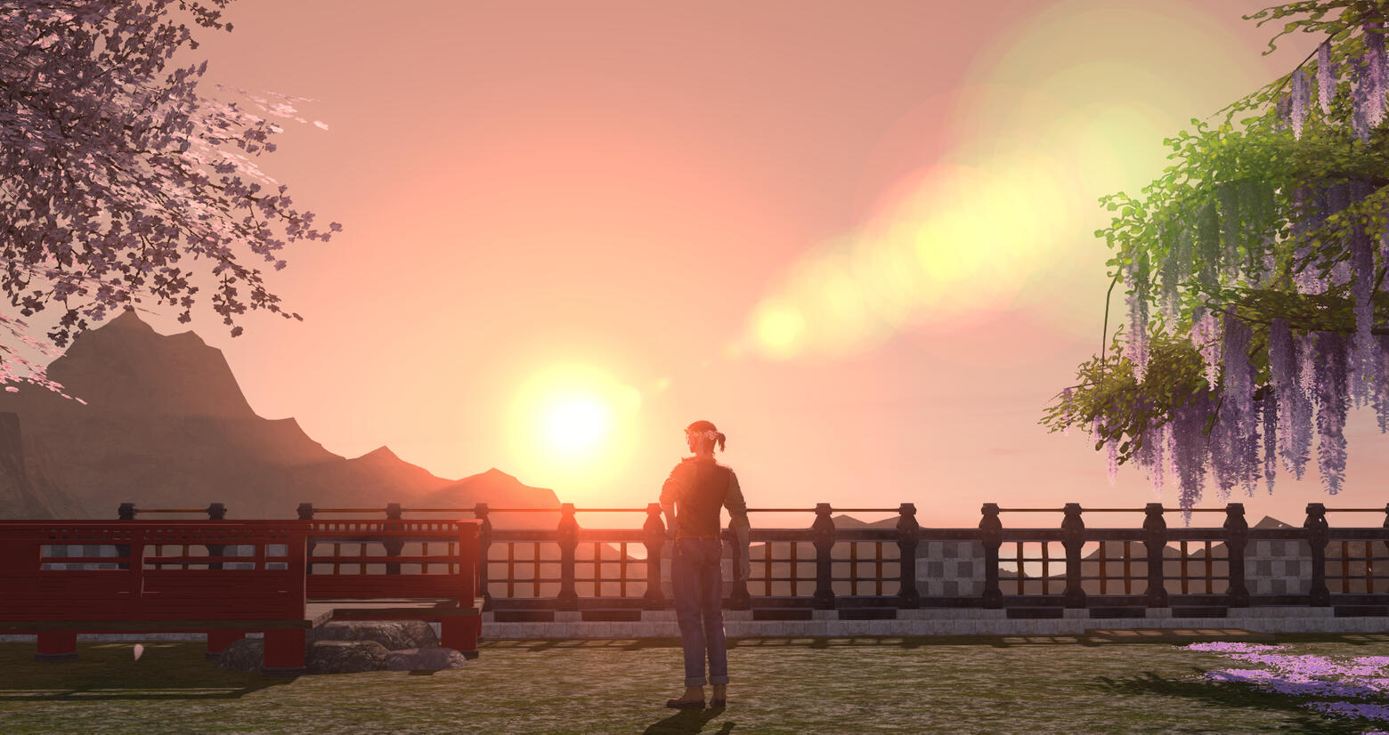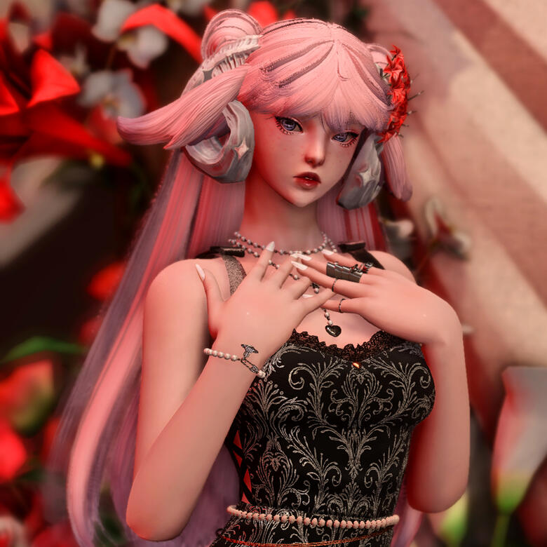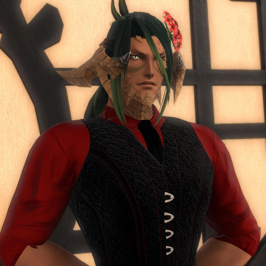 You wind your way through the upper-class districts of Ul'dah, a coyly-worded invitation clutched in your hand. The name Twisted Lotus has long been associated with pleasure here, but only recently has it been open to all to enjoy, regardless of status. As you pass by the improbably manicured grass lawns, wondering at the luxury that allows their owners to grow such a thing in this arid climate, you eventually come to a high hedge wall scattered with roses. You follow it to find a wrought iron gate, set with a pink stained glass flower in the center, towering over you.