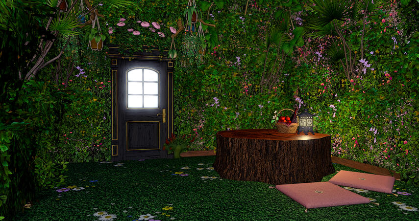 The Back Garden (Room #6) is one of the spaces we're proudest of here. Finally, a space where you can enjoy your outdoor sex and primal encounters freely! Whether you're after a romantic picnic, steamy hot spring sex, or a literal roll in the hay, be sure to explore to find just everything our extra space has to offer. There's still tucked away corners yet to be found!
