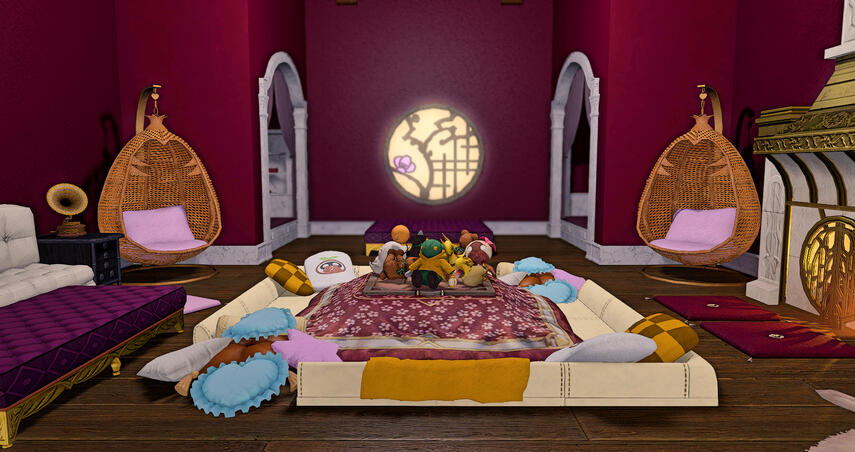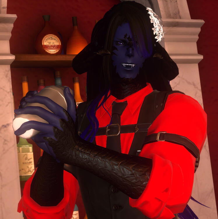 No one is quite sure who Mun and Floki's mysterious business partner is, and when asked, the pair will simply grin and say "oh, just the big boss at our workplace." Whoever they are, they either doesn't seem to care much about partaking in the club's pleasures, or else are keeping themselves very well undercover - but theories abound. A powerful member of the Syndicate? A dignitary come to Eorzea from far-off lands? An elder dragon who just wants a break from Dravanian politics? Or perhaps it's a person of much smaller countenance...